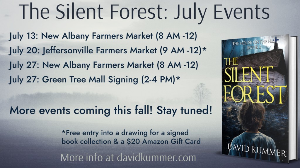 CLARKSVILLE, IN: Celebrate the launch of The Silent Forest with a live reading of Chapter 2, a Q&A session, and a chance to enter a drawing for signed copies of all my books and a $20 Amazon gift card. Signed books also for sale or available via direct message.